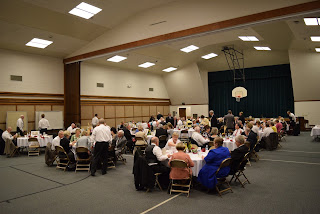 | That night we had a get together with all of the "Winter" Missionaries and put on a feed for them over at the Arrival Center. All of us in there like sardines but it's nice and cozy. One of the couples had just gotten there an hour before and couldn't find their missionary clothes. Lots of talk and getting to know each other. Interesting people. |